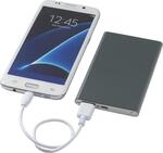 4000 mAh slim, lightweight aluminium power bank with grade A lithium polymer battery. The LED indicator lights up during charging and displays the remaining battery capacity in the power bank. Power bank’s input is 5V/1A and output is 5V/1A. Includes a USB to Micro-USB charging cable. Supplied in a blank white gift box. Aluminium.