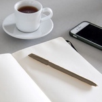 WoW! The barrel and cap of this blue ink ballpoint pen are made from tightly rolled, recycled paper.